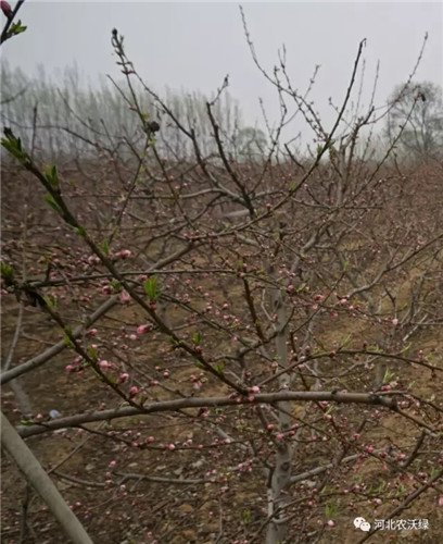 這張是施用其他牌子有機(jī)肥的,明顯可以看出花苞小,幾乎沒有抽芽,生長期要比施用農(nóng)沃綠生物有機(jī)肥的桃樹落后6-8天左右。