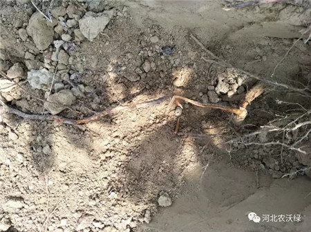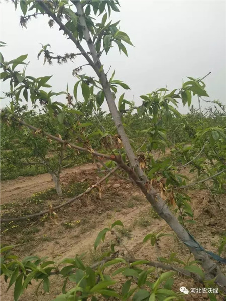 以上圖片是在今年春天立旺桃樹種植專業(yè)合作社的負責人找到我們時給我們看的照片。據(jù)了解,去年立旺桃樹種植專業(yè)合作社就因為這種情況出現(xiàn)了很多桃樹死棵現(xiàn)象。因此今年張社長輾轉(zhuǎn)來到了我們河北農(nóng)沃綠農(nóng)業(yè)科技有限公司,尋找解決的辦法。公司農(nóng)技師在詳細了解了桃樹的病況和這兩年立旺桃樹種植專業(yè)合作社的施肥情況后采集了果園的土樣進行了化驗,綜合分析后認為是桃樹根腐病和流膠病等混合表現(xiàn),給出了解決方案,使用農(nóng)沃綠VT-1000菌液200倍液灌根處理。