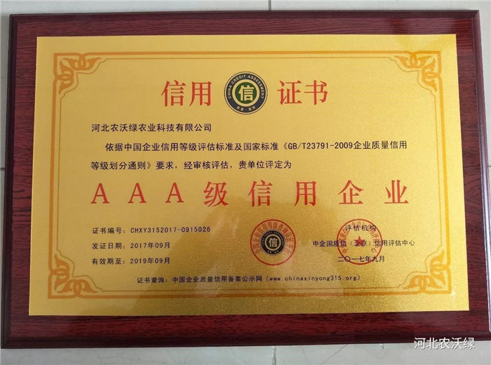 產(chǎn)品質(zhì)量是企業(yè)的生命,信用是企業(yè)發(fā)展的根本。河北農(nóng)沃綠農(nóng)業(yè)科技有限公司重視產(chǎn)品質(zhì)量,企業(yè)信用良好獲得業(yè)界和評(píng)審機(jī)構(gòu)的一致認(rèn)可。