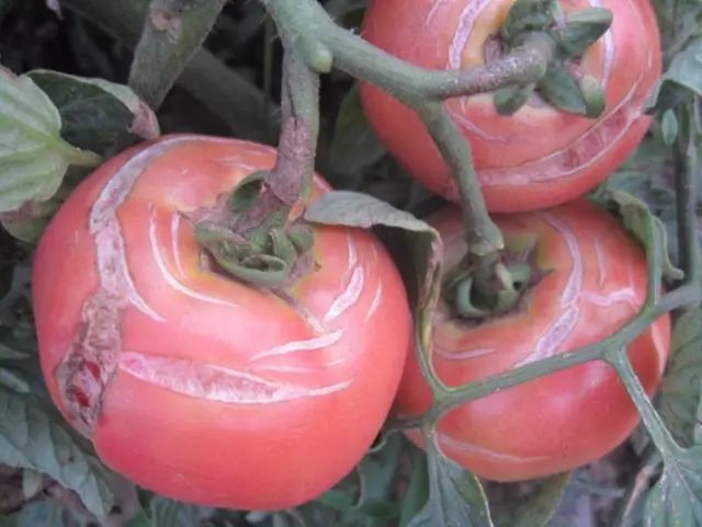 溫濕度劇烈變化、水肥不均衡等因素,會(huì)導(dǎo)致內(nèi)部果肉生長(zhǎng)加快,但果皮生長(zhǎng)慢,積累到一定程度就會(huì)出現(xiàn)裂果。近段時(shí)間,天氣陰晴不定,晝夜溫差加大,夜間棚內(nèi)濕度高,露水重,晴天后氣溫上升快,溫濕度劇烈變化,是導(dǎo)致近期裂果嚴(yán)重的首要因素。