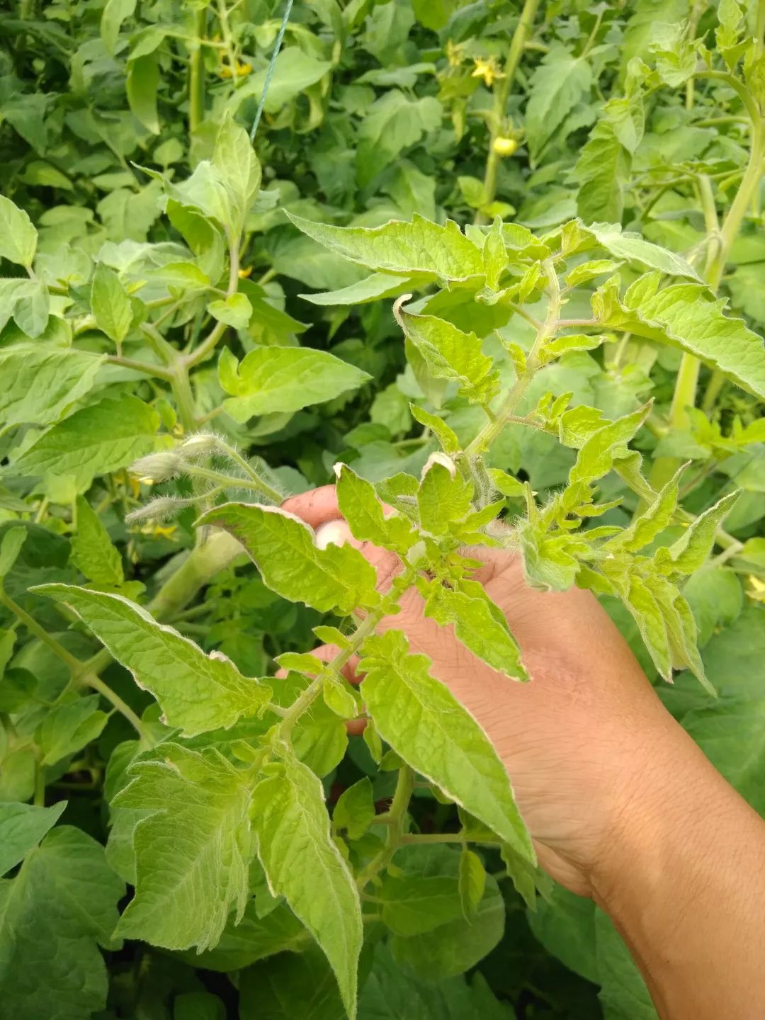 4、補(bǔ)救措施。出現(xiàn)肥害癥狀后立即澆水,一般澆水2~3次后肥害即可解除,同時(shí)沖施農(nóng)沃綠VT-1000菌液,增強(qiáng)番茄的抵抗力。