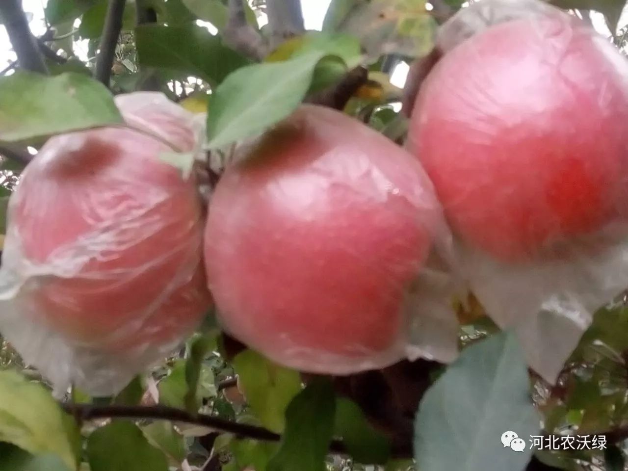 、诩t色品種使用單層袋的,于采收前30天左右,將袋體撕開(kāi)呈傘形,罩于果實(shí)上防止日光直射果面,過(guò)7~10天后將袋摘去,以防止日灼,加速著色。