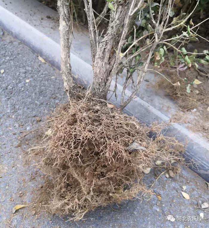刨開根部土壤,發(fā)現(xiàn)土壤鹽漬化嚴(yán)重,根系生長受到抑制,不生新根,有爛根現(xiàn)象,嚴(yán)重的最后死棵,失去活力。
