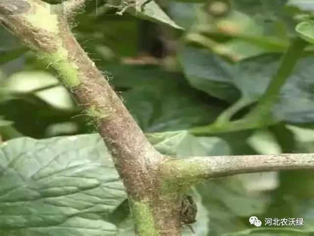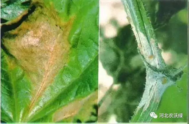 主要為害莖和果實,也為害葉和葉柄。莖部出現(xiàn)傷口易染此病。