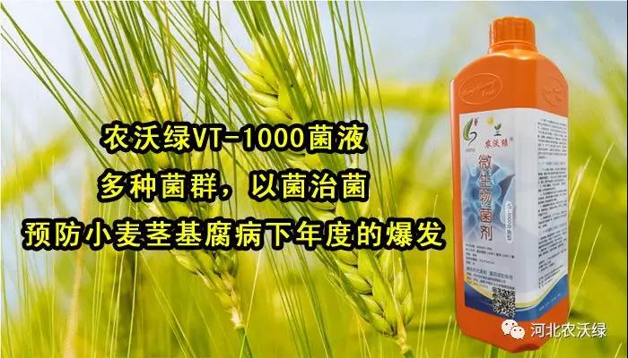 如果您想省工不出力又想調(diào)理土壤預(yù)防小麥根部病害,預(yù)防莖基腐病菌下年度爆發(fā)。在小麥苗期就應(yīng)該預(yù)防起來:小麥澆凍水時(shí)沖施農(nóng)沃綠VT-1000菌液,以菌治菌,平衡土壤酸堿,減少小麥莖基腐病的發(fā)生。
