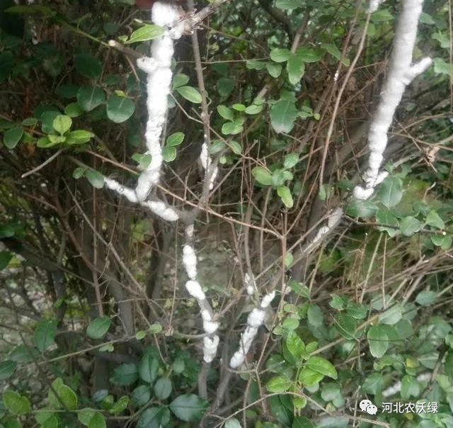 圖為:小葉女貞枝干被白色物質(zhì)包裹