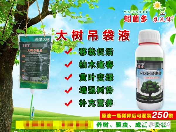 除了使用強(qiáng)力生根劑外,對(duì)于大規(guī)格的樹(shù)木,種植后用農(nóng)沃綠大樹(shù)吊袋液補(bǔ)充營(yíng)養(yǎng),促進(jìn)根系生長(zhǎng),增強(qiáng)樹(shù)勢(shì),促進(jìn)其成活率。