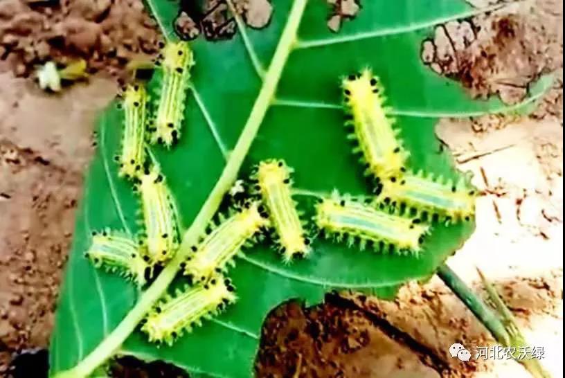 食葉害蟲是以植物葉片為食物的一類害蟲。主要以幼蟲取食葉片危害為重,造成葉片缺刻甚至吃光。少數(shù)侵入葉內(nèi),取食葉肉形成“開天窗”的危害狀。此類害蟲多以群聚,蟲口數(shù)量大對葉片造成極大危害。