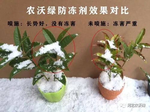 相比于未噴施的植物,噴施農(nóng)沃綠防凍劑的植物,長(zhǎng)勢(shì)好,沒有凍害。