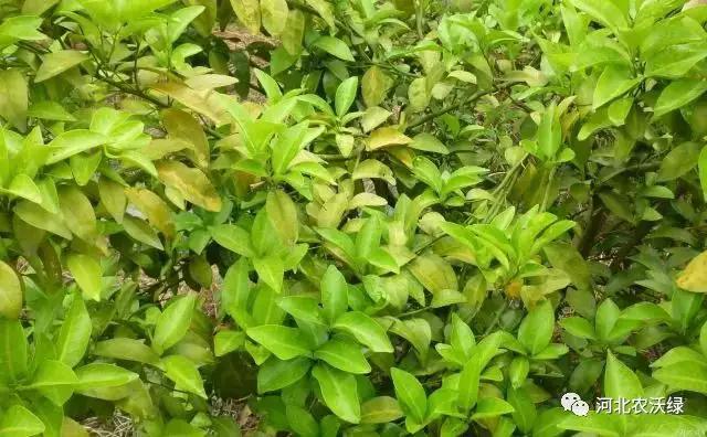 地上部主要表現(xiàn)為生長緩慢、樹勢衰弱、發(fā)芽晚卻落葉早、葉小而黃(有的從春天展葉到落葉一直是黃色的),或者葉緣枯焦、黃化脫落,新梢生長遲緩,難成花結(jié)實(shí),果實(shí)變小、品質(zhì)降低,嚴(yán)重時(shí)整樹枯死。