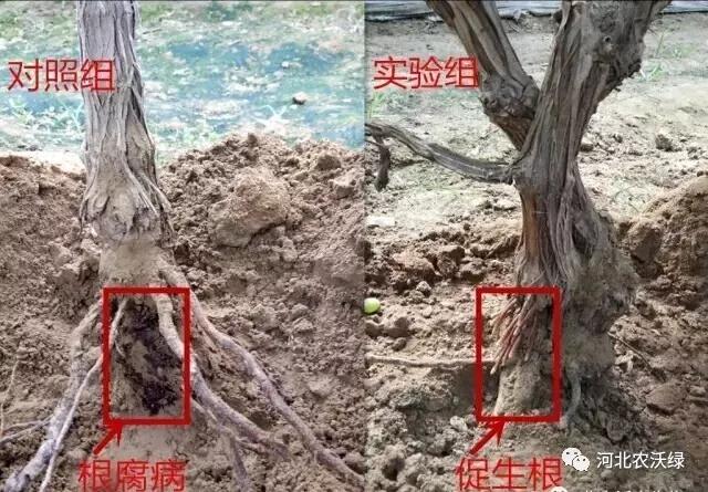 葡萄樹根腐病,使用農(nóng)沃綠VT-1000菌液灌根后長出新根